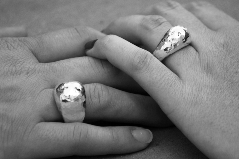 Article -G157- Handmade hammered ring made of silver fusion 925.